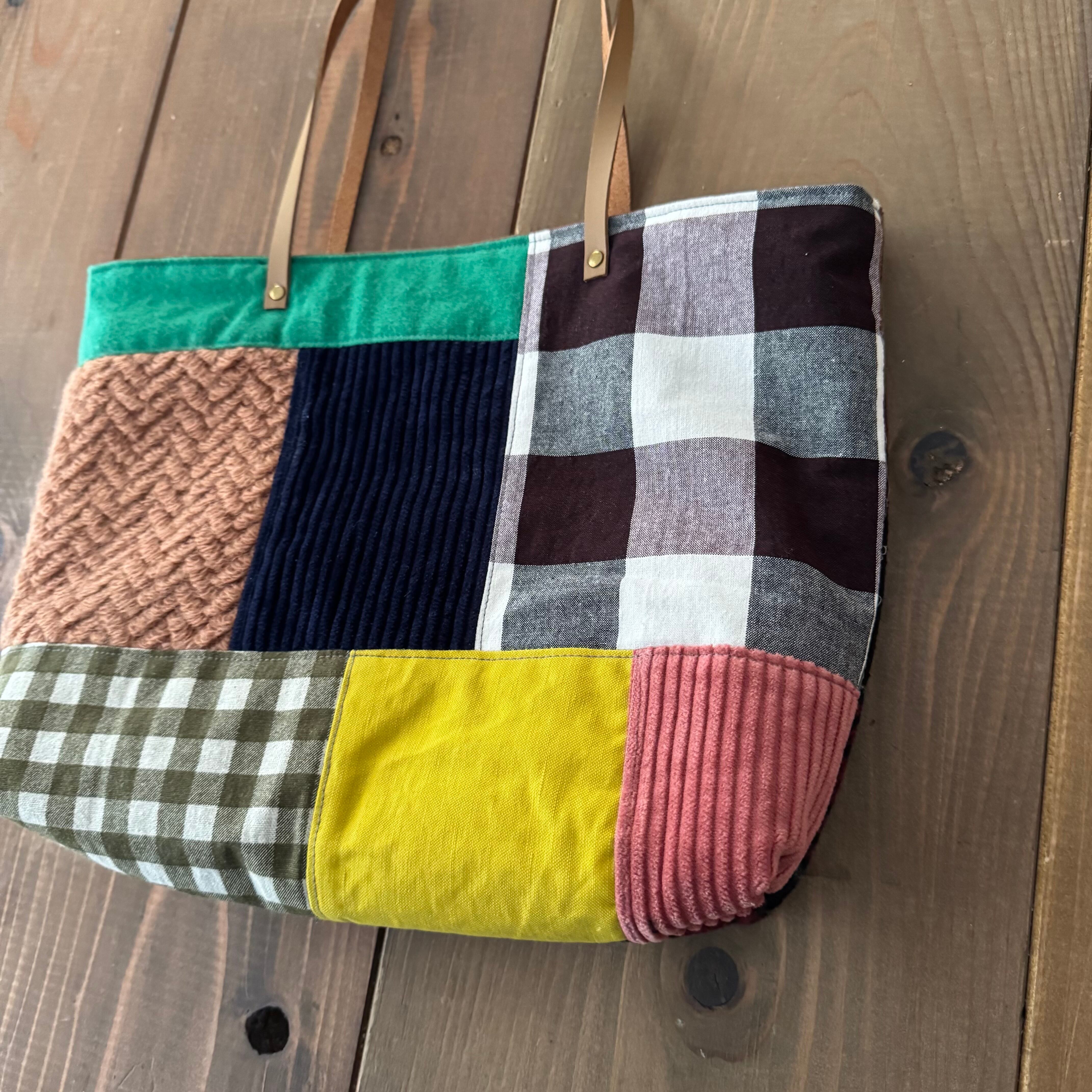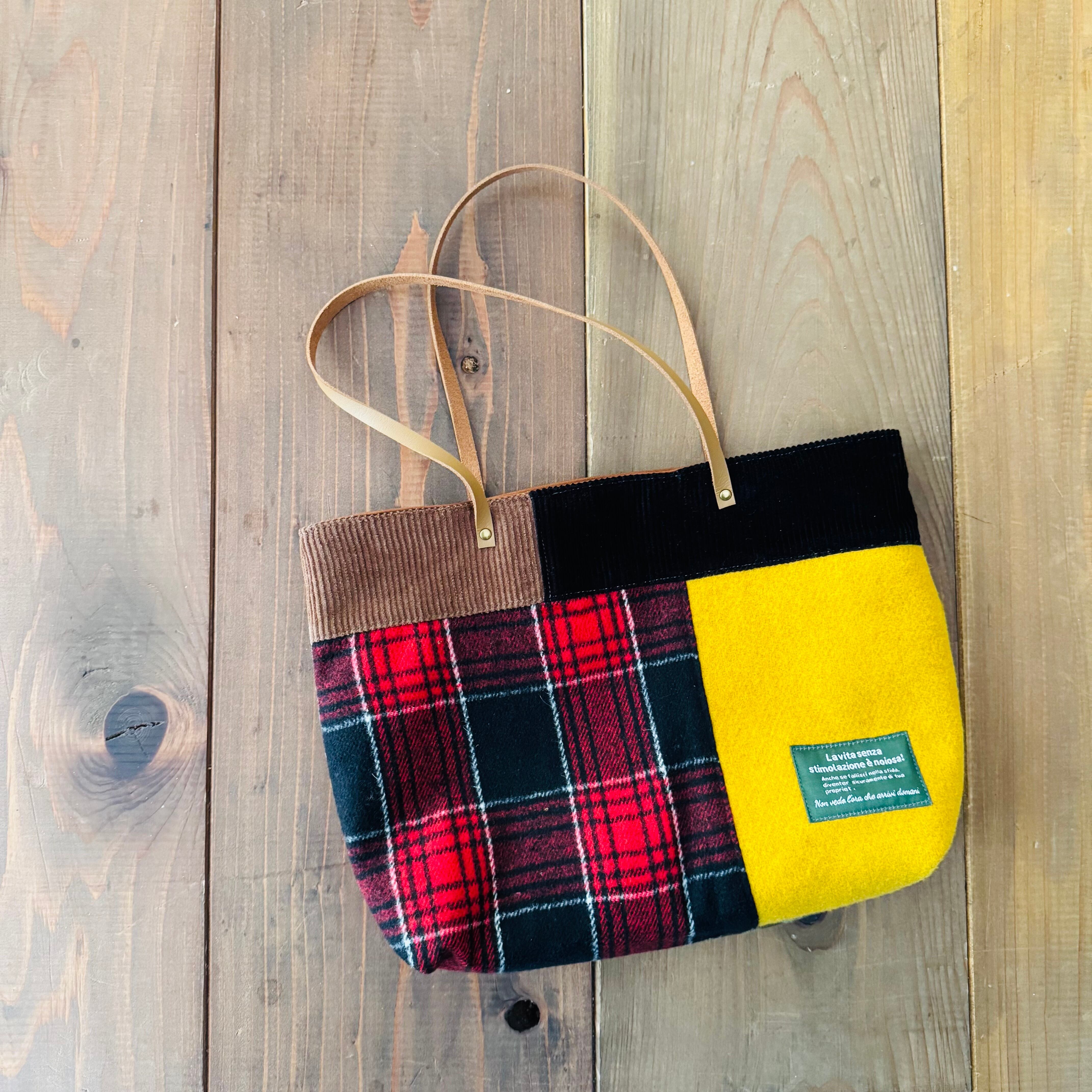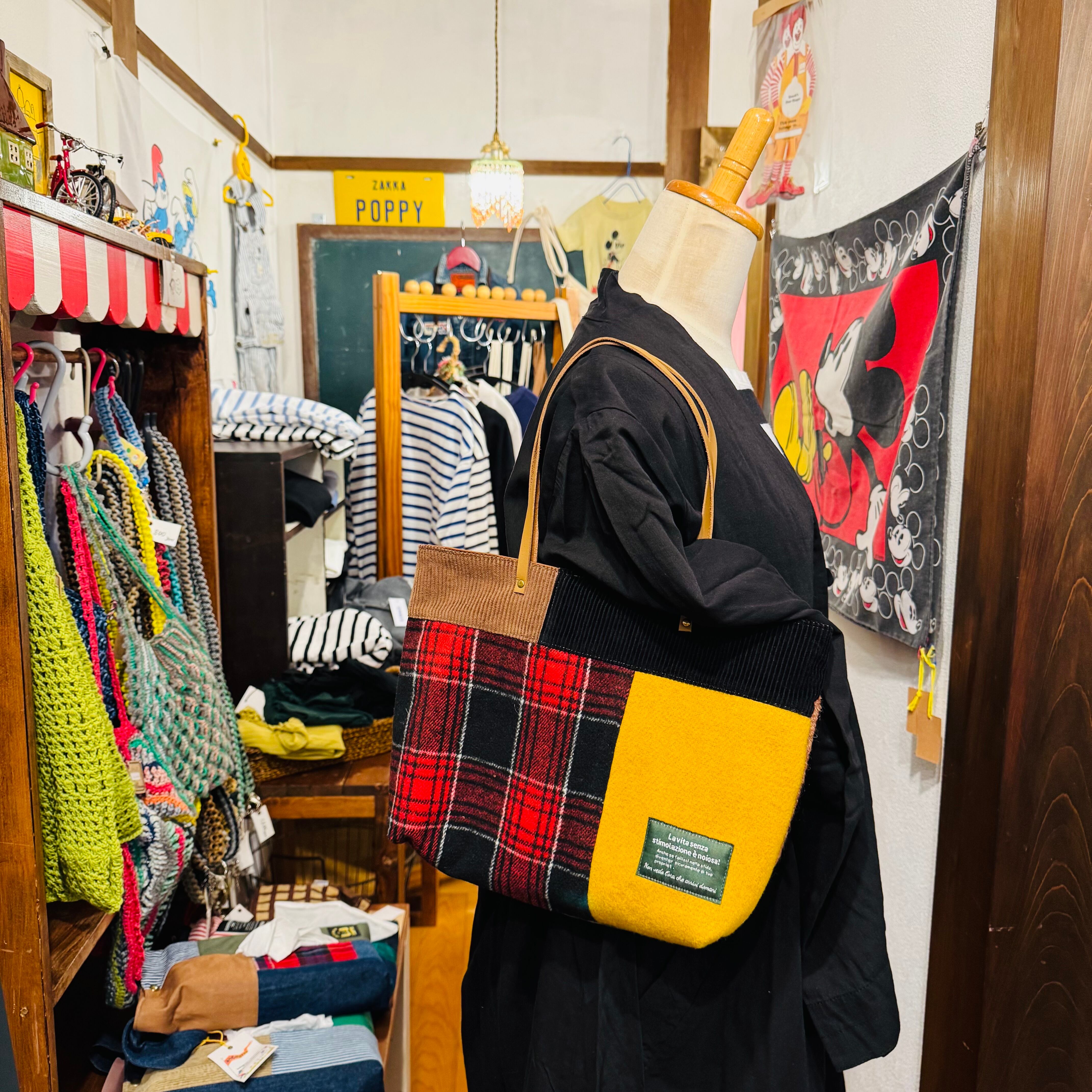 チェックやウール生地をパッチした、あたたかみのあるミニバッグです。