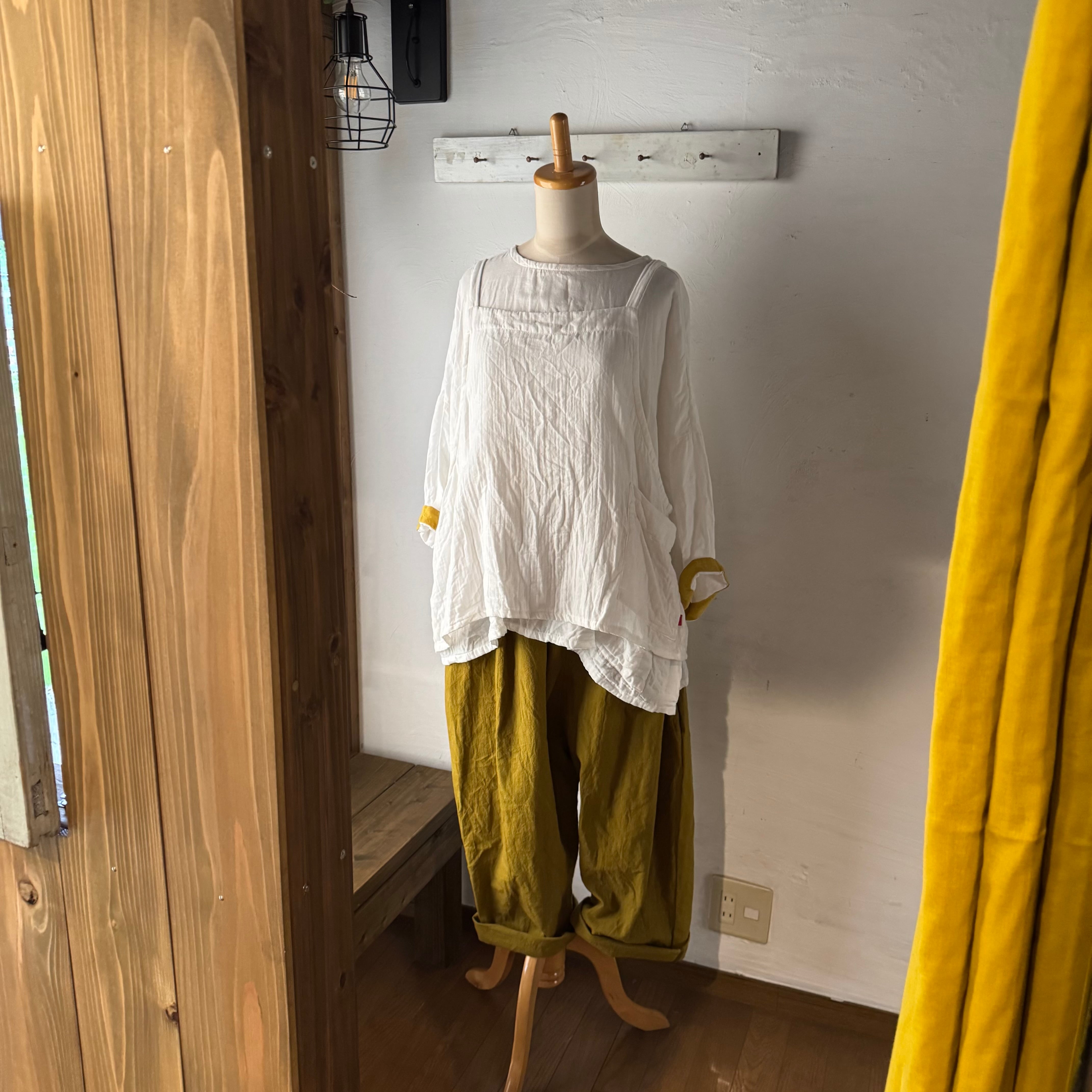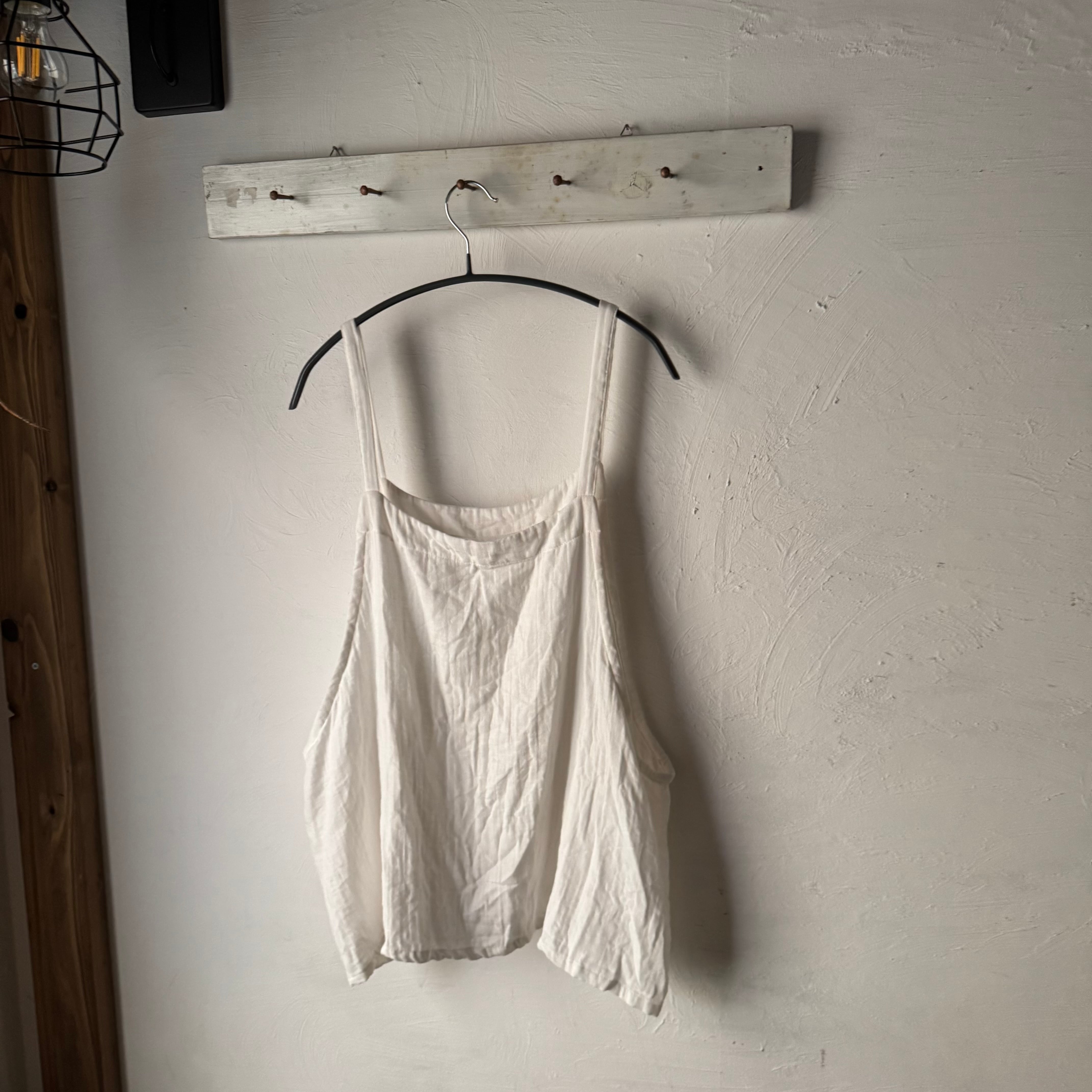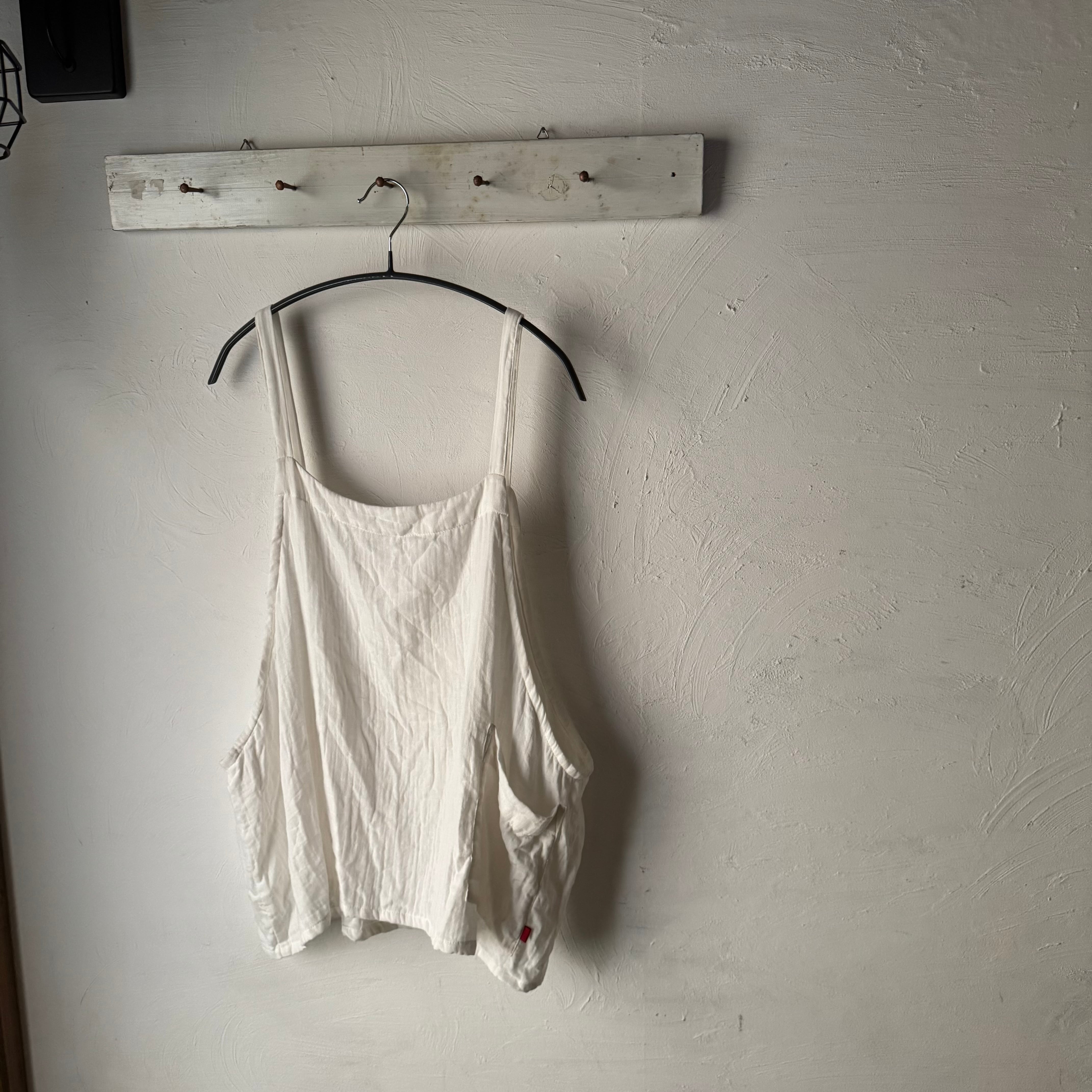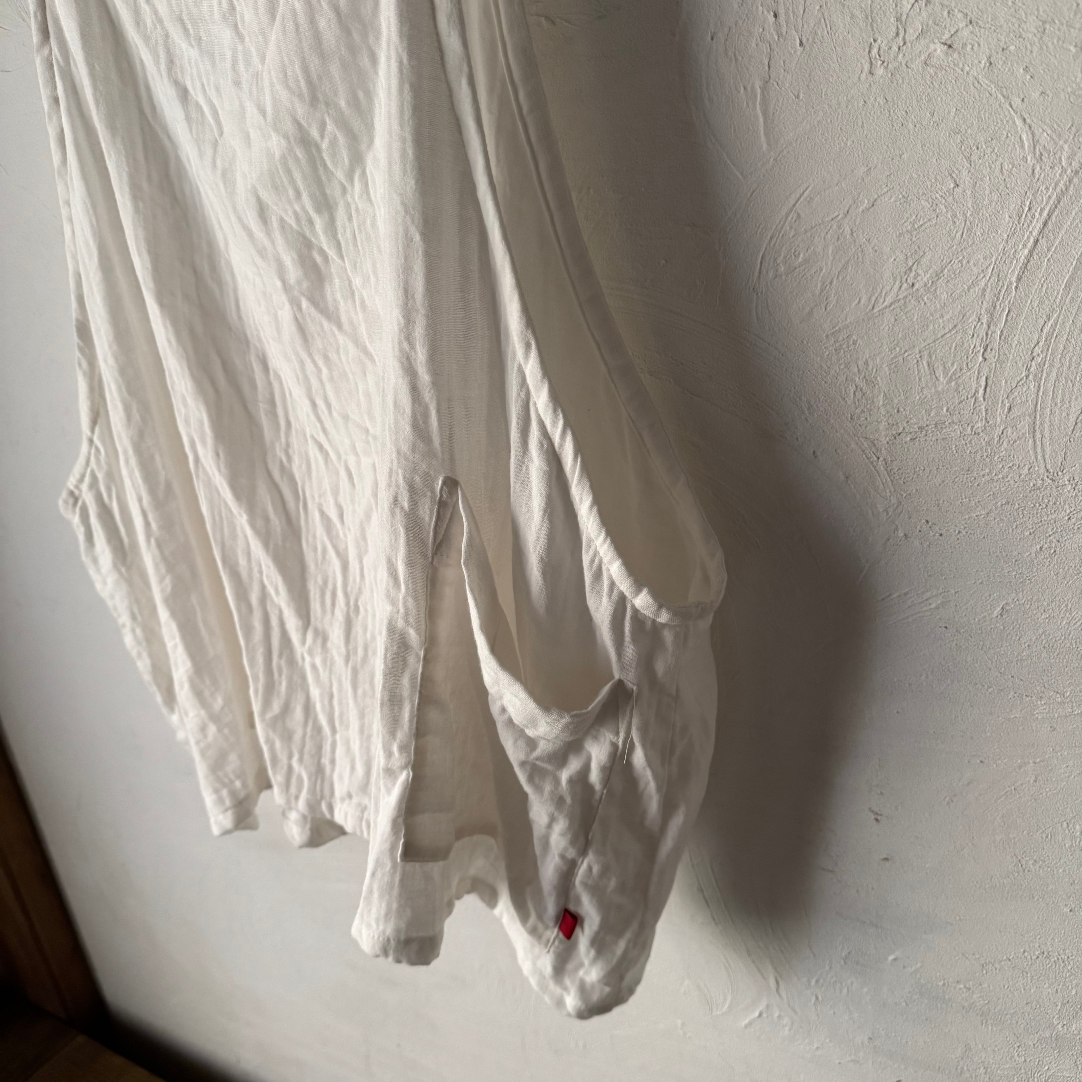 やわらかなホワイトのダブルガーゼ素材で仕立てた、ゆったりシルエットのベスト。