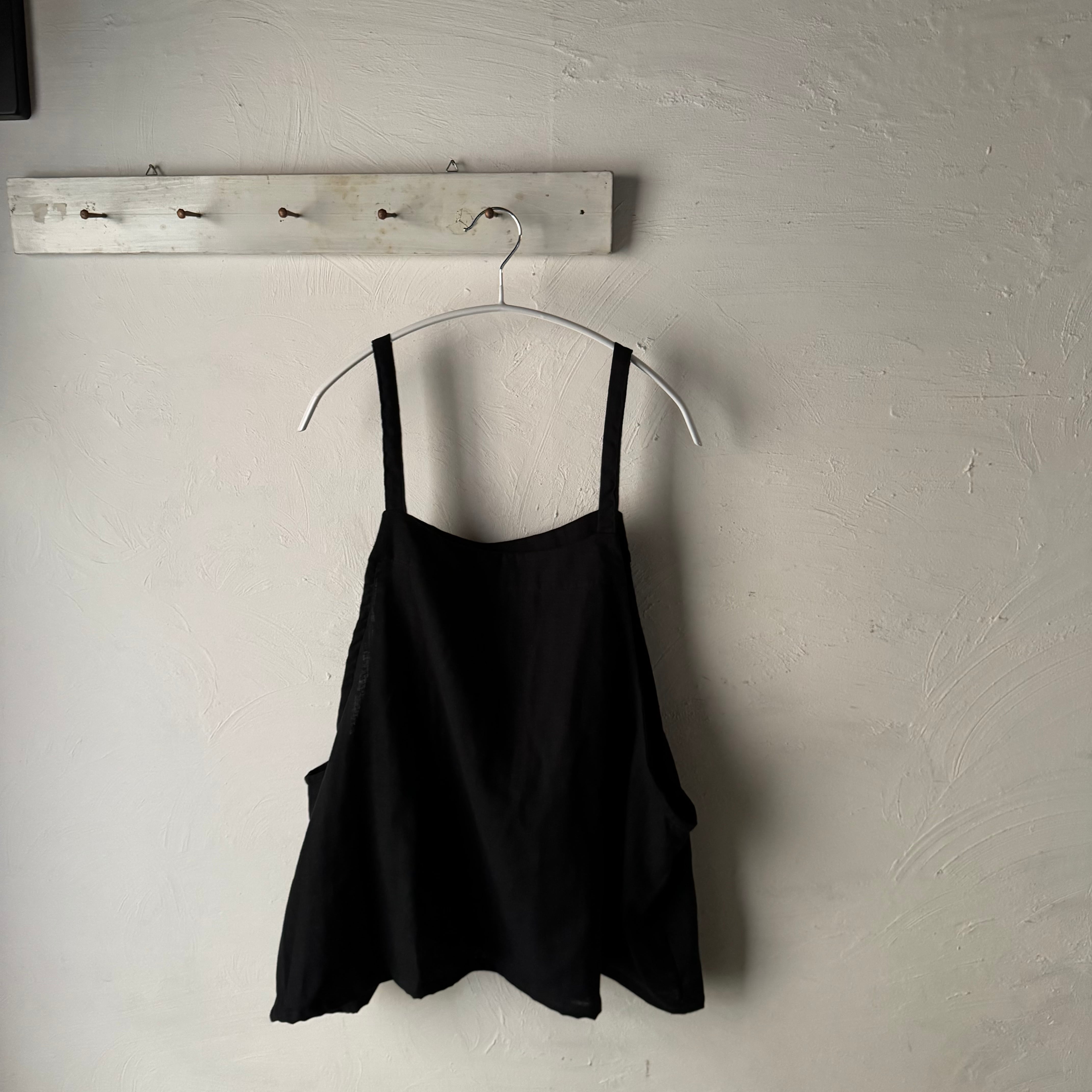 やわらかなブラックのダブルガーゼ素材で仕立てた、ゆったりシルエットのベスト。